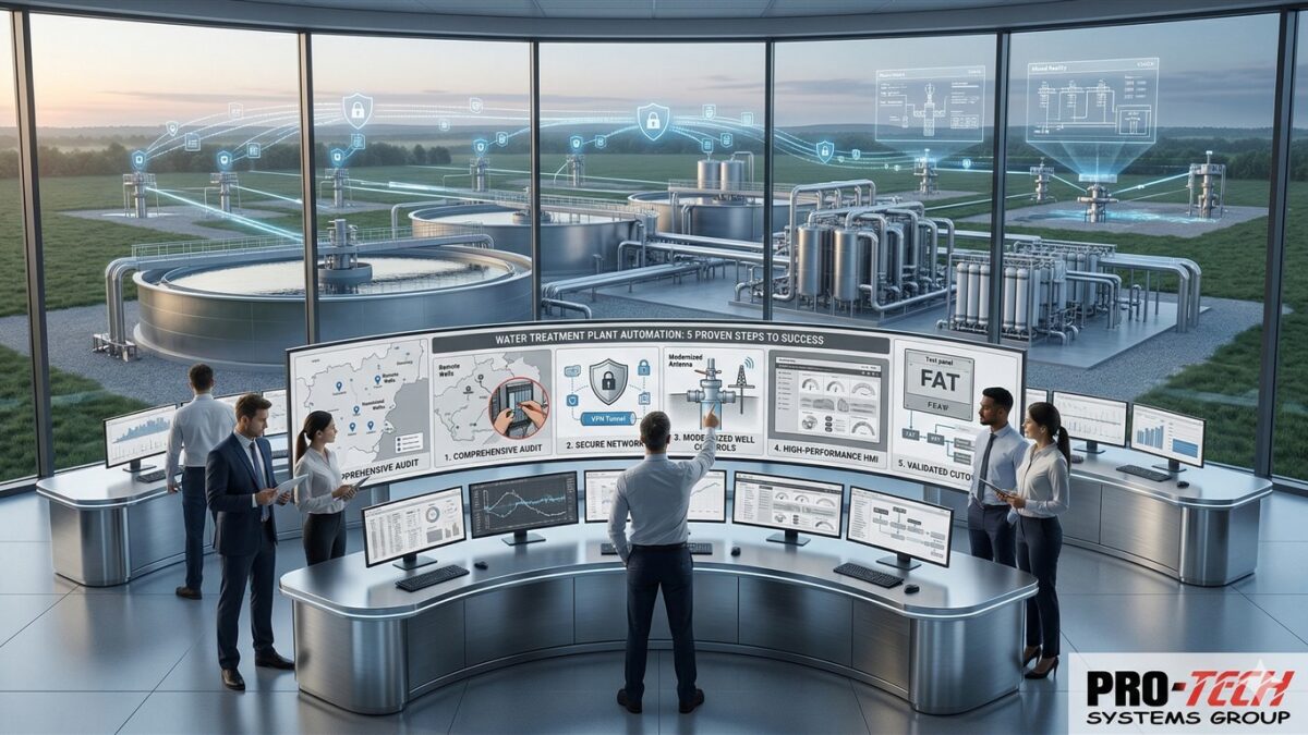 At Pro-Tech Systems Group, we have decades of experience executing complex water treatment plant automation projects. From designing the initial control architecture to the final commissioning of your extraction wells, we provide the turnkey expertise required to modernize your municipal or government water infrastructure.